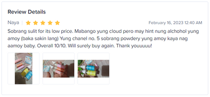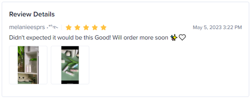 Here are some of our TikTok shop rating and reviews, unfortunately as of now, it is still close, but we'll be back soon. For recent reviews you can check our Shopee and Lazada shop.
